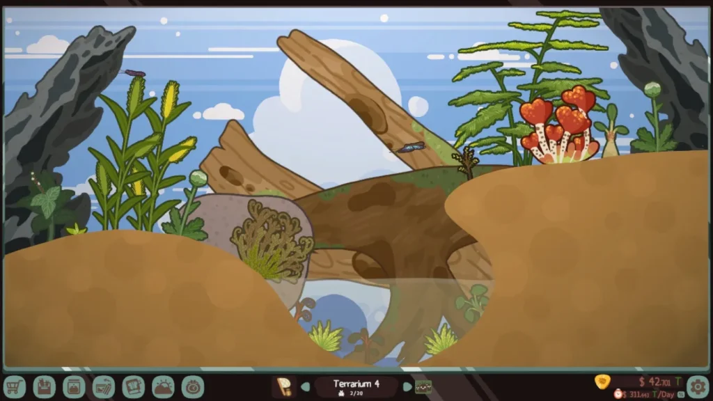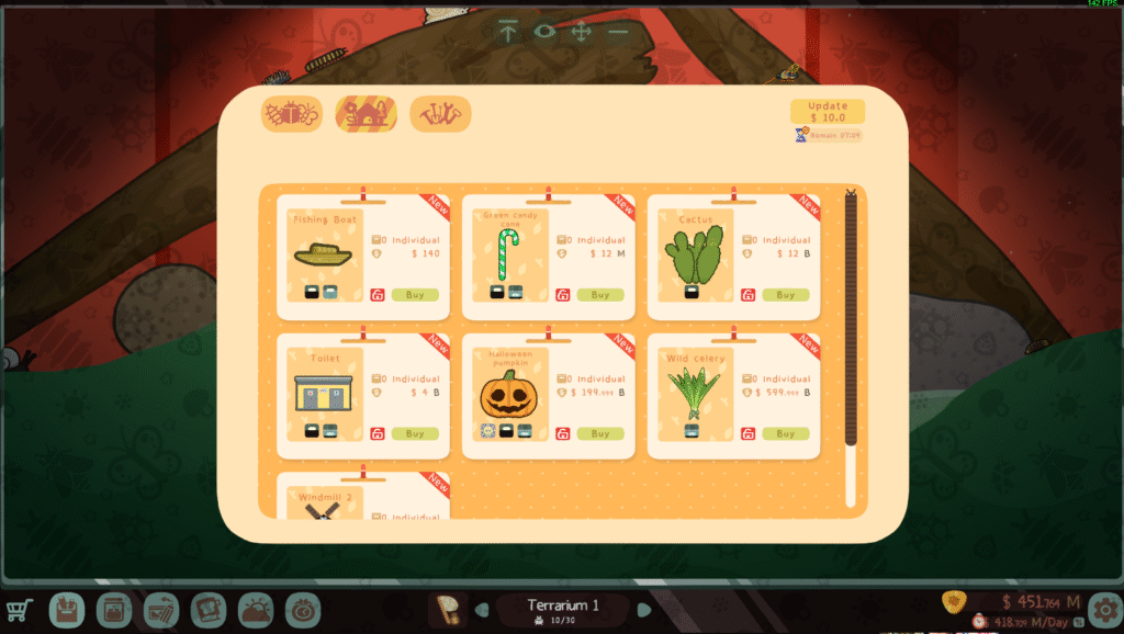 Bugtopia to bowiem gra idle/klicker stworzona przez trzech pasjonatów wszelkiego rodzaju insektów. Trio miało na celu stworzenie idealnego środowiska dla ludzi chcących zarządzać swoim własnym wirtualnym terrarium i uważam, że udało się to całkiem dobrze. W grze dostępne jest 300 rodzajów robaków, które będziemy zdobywać wraz ze wzbogacaniem się w wirtualne dolary. Podstawowe insekty trzeba kupić, a na rzadsze okazy będzie trzeba zapracować. W sklepie znajdziemy jednak nie tylko żyjątka, ale również elementy upiększające nasze terrarium oraz ulepszenia pozwalające nam rozwijać się jako hodowca np. dokupując kolejne akwaria czy zwiększając ich pojemność.